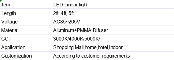linear light usually applicable for general lighting like office building, schools ,airport or train station, meeting halls ,etc. It makes light well-distributed with low glare, and also bright enough for working or study, which is good for human eyes